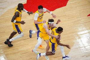 本场比赛,湖人的替补表现依旧不算好,共有四人获得出场机会,仅八村塁(6分)和拉拉维亚(7分)有得分入账,替补合计一共拿到13分。