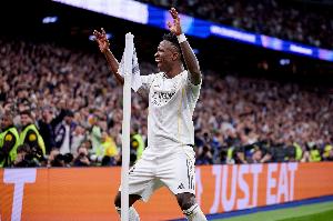 体育资讯3月18日讯 在本轮欧冠淘汰赛皇马对阵曼城的比赛中,维尼修斯破门。